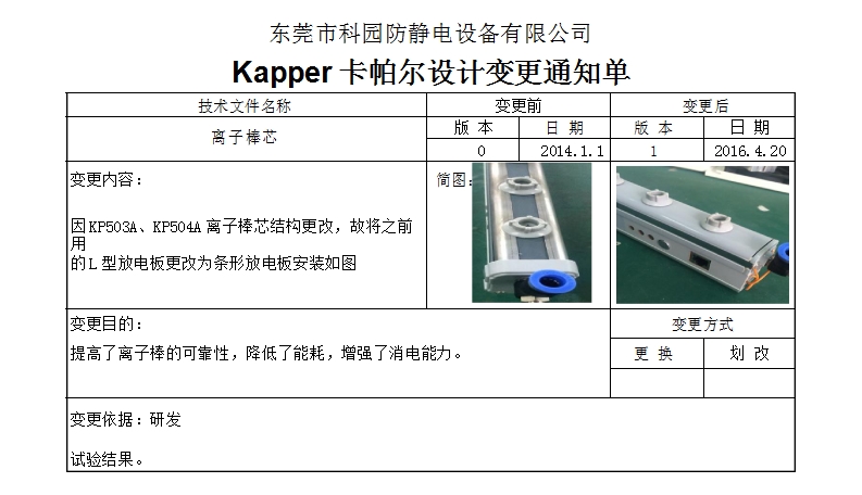 關(guān)于智能離子棒設(shè)計(jì)變更的通知