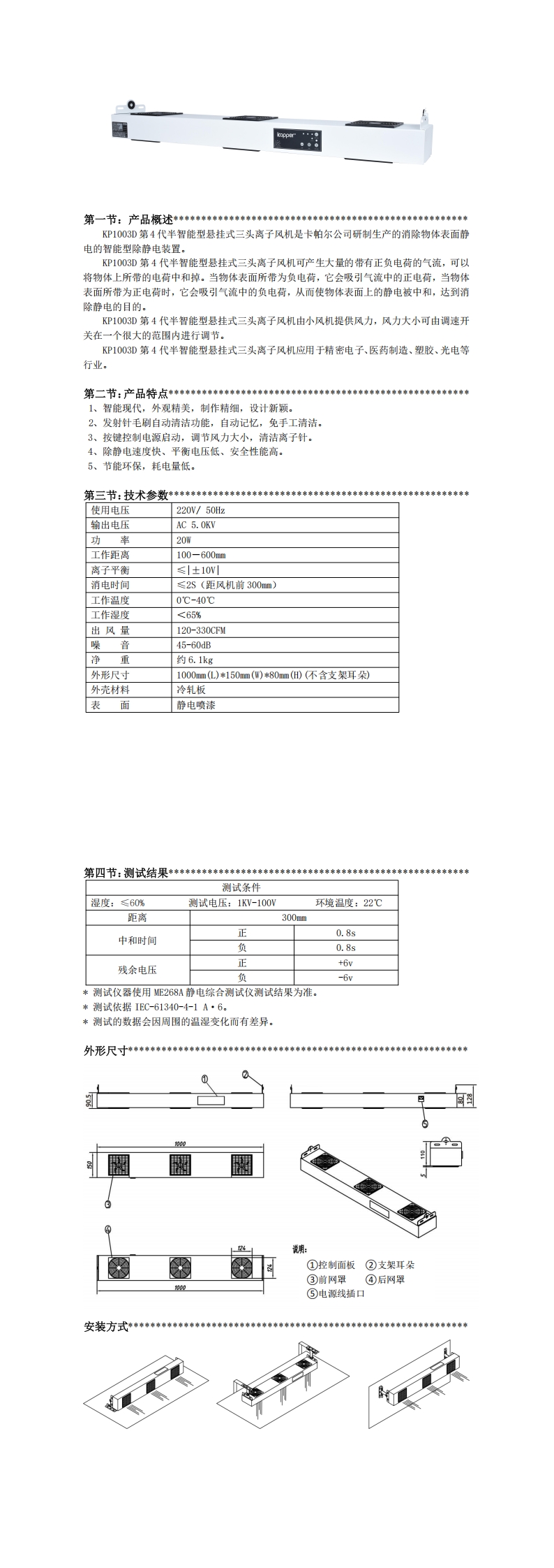KP1003D第4代半智能型懸掛式三頭離子風機