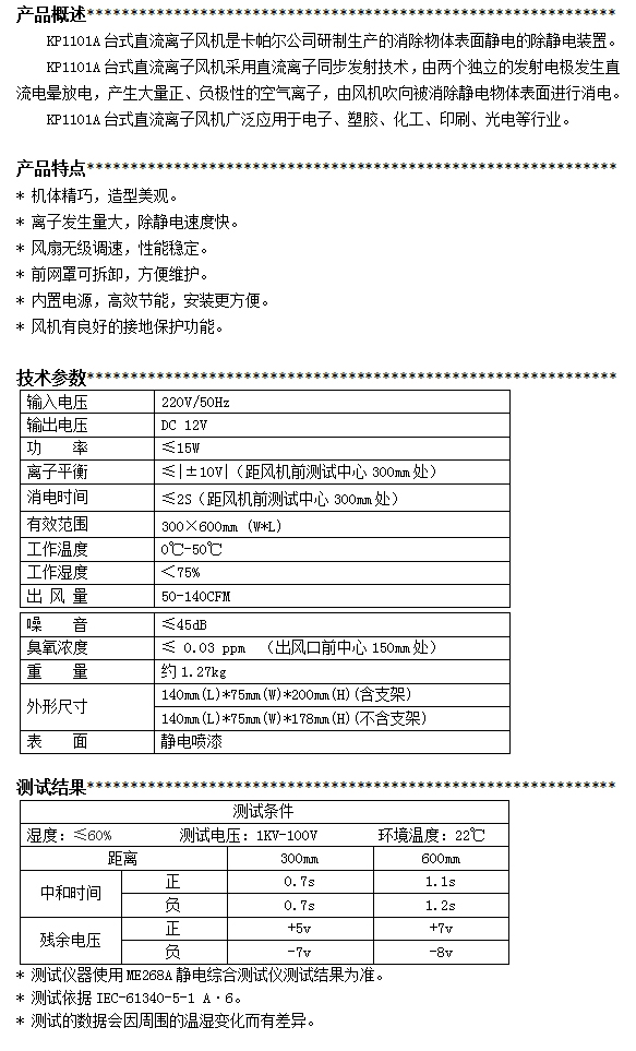KP1101A臺(tái)式直流離子風(fēng)機(jī)