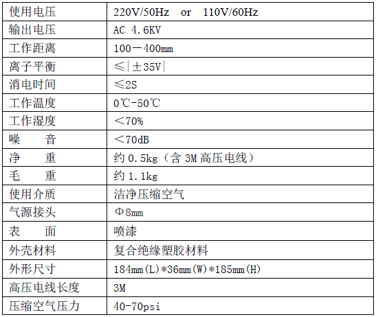 3、中和靜電迅速,除塵效果好,平衡電壓低,。