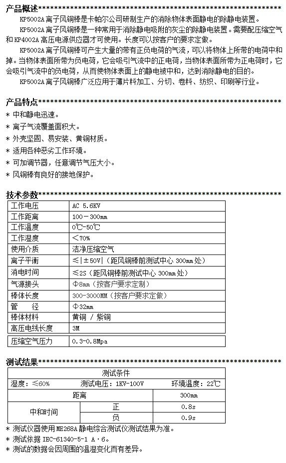 KP5002A第三代離子風(fēng)銅棒