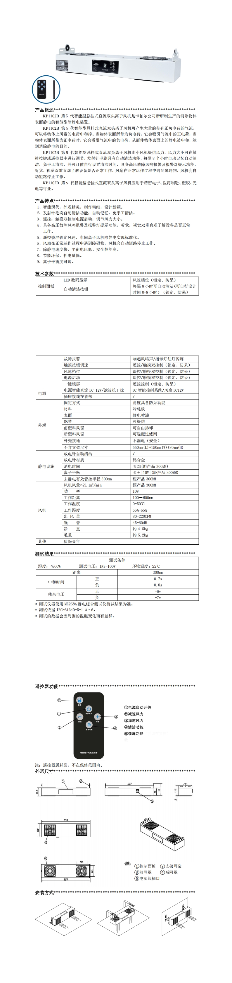 KP1102B 第 5 代智能型懸掛式直流雙頭離子風(fēng)機