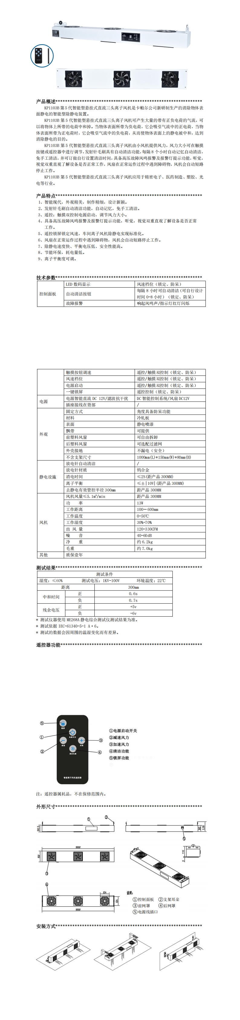 KP1103B 第 5 代智能型懸掛式直流三頭離子風(fēng)機