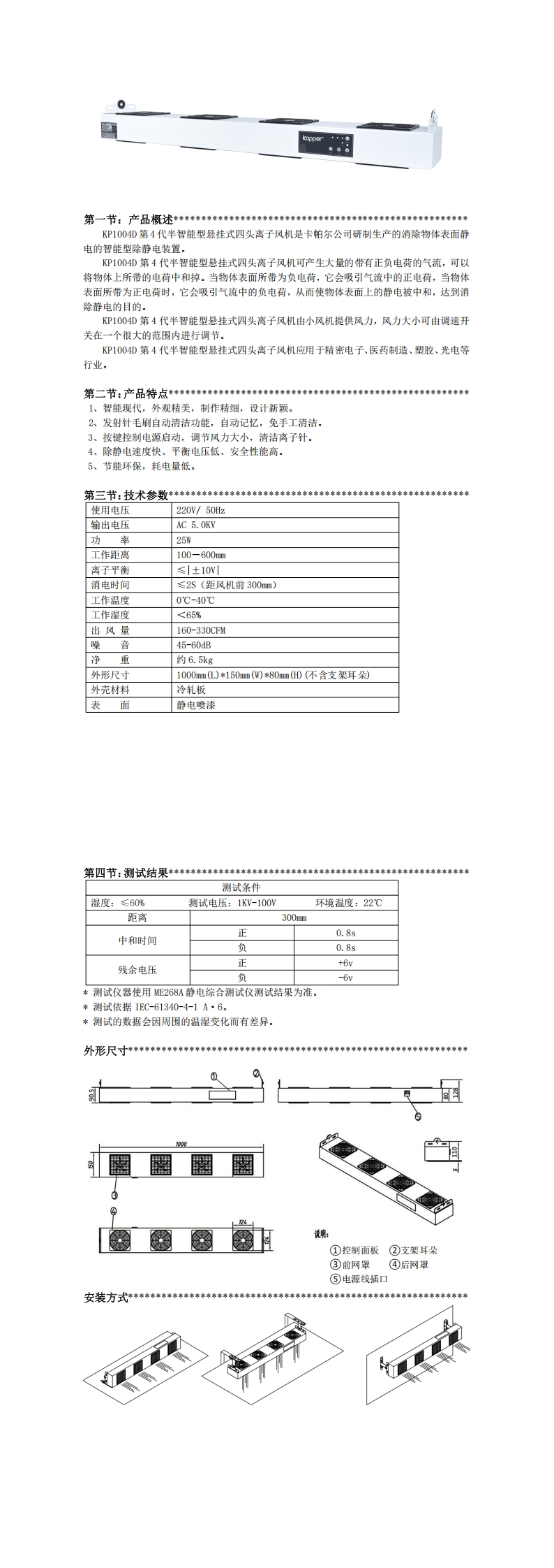 KP1004D第4代半智能型懸掛式四頭離子風機
