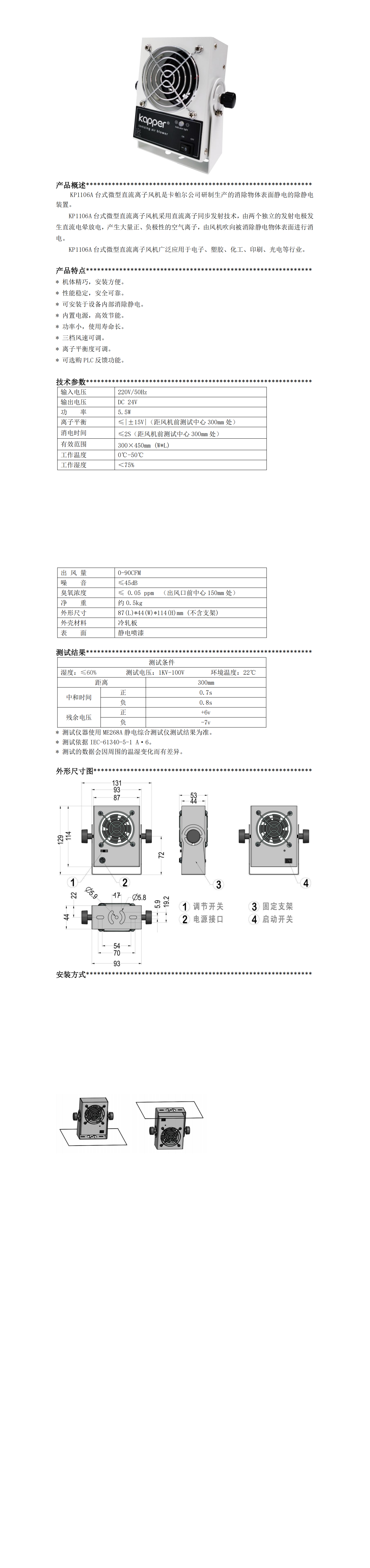 KP1106A 臺(tái)式微型直流離子風(fēng)機(jī)