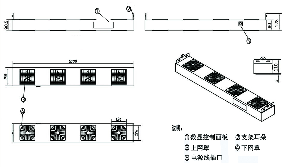 1000(L)*150(W)*128(H)mm